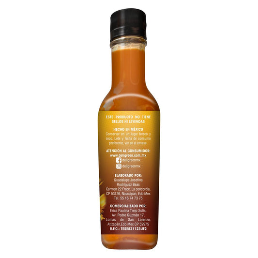Disfruta las salsas naturales Deligreen, una fusión deliciosa de frutas y chiles mexicanos como mango habanero, mango chipotle, jamaica chipotle, tamarindo chipotle y habanero limón. Elaboradas con ingredientes naturales, sin conservadores ni colorantes, son el toque perfecto para quienes buscan comer más saludable sin renunciar al sabor. Ideales para acompañar carnes, verduras, tacos o snacks.