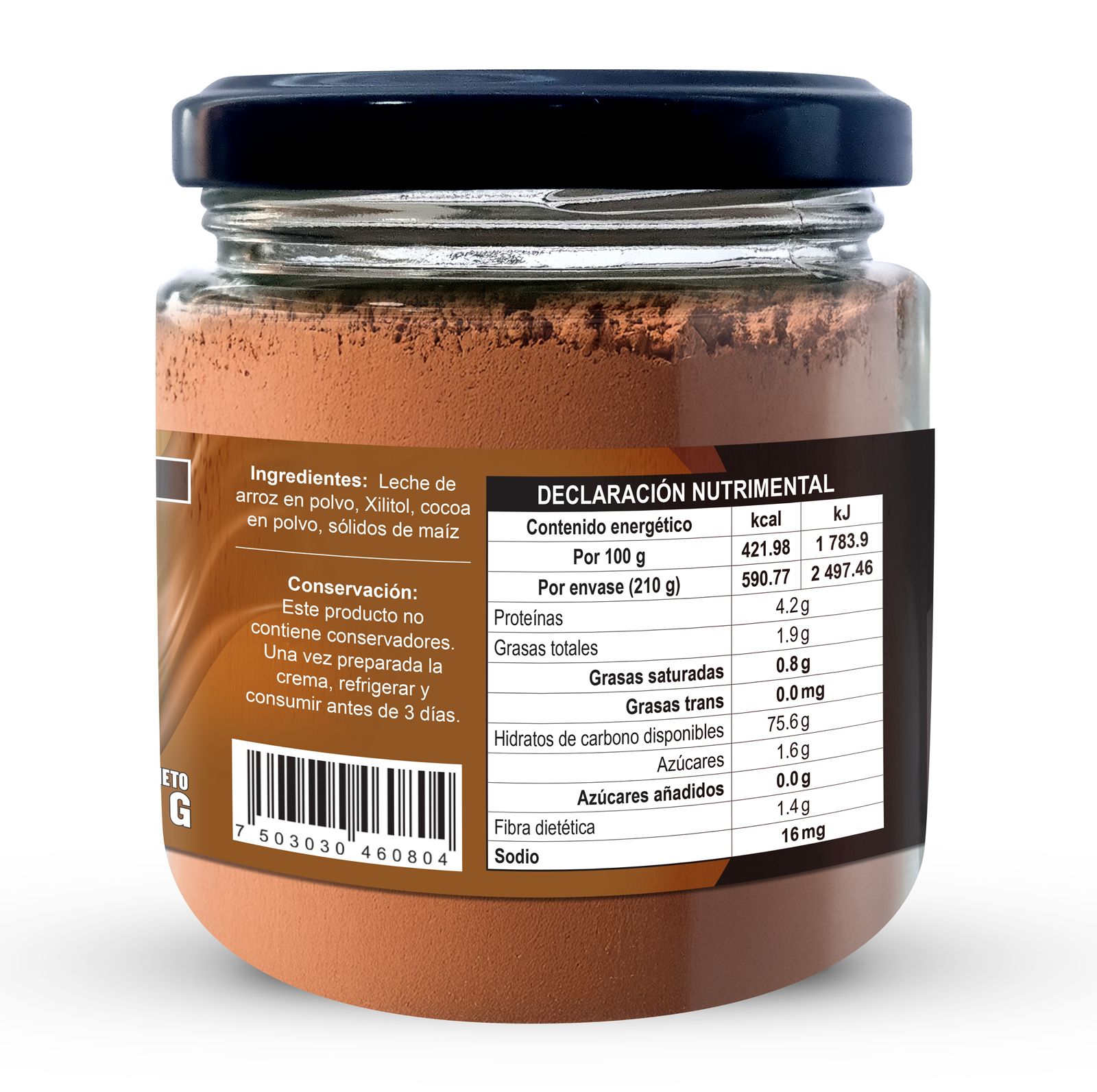 Su sabor es tipo chocolate con leche, sin amargor, ideal para quienes buscan un antojo dulce más consciente. Solo agrega agua o leche caliente y disfruta en segundos una crema perfecta para untar o acompañar tus platillos favoritos.
