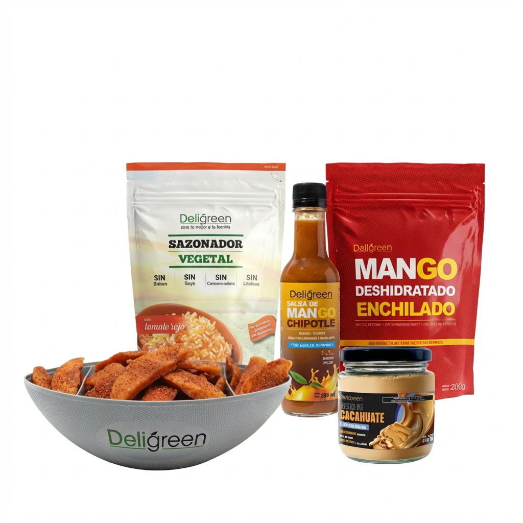 Un kit pensado para armar botanitas diferentes en minutos: palomitas con un toque “rojo” único, dip cremoso con salsa frutal picosita, snack enchiladito y un untable de cacahuate sin azúcar para tus antojos dulces. Solo pagas $1 de envío en este kit.